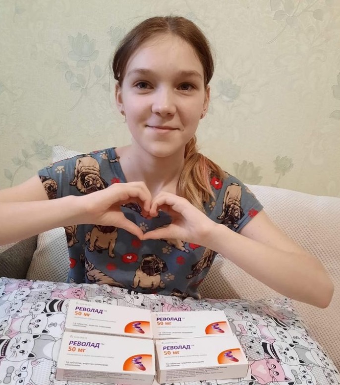 “Good afternoon, our dear assistants. Many thanks to everyone who opened their hearts for us! I do not have enough words to express my gratitude to you all. Today our revolad was taken from the post office - 4 packs, we bought it from our hands much cheaper than in a pharmacy. Nastya, thanks to all of you, is provided with a life-saving drug for a month.