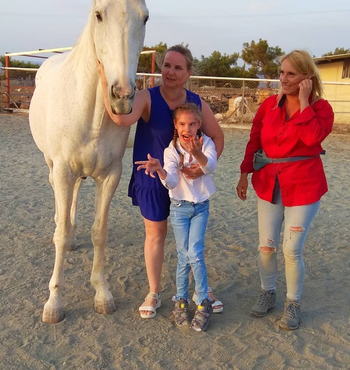 On Wednesday evening, before sunset, our guests - Tatiana and Kirochka @help_kira_pulinskaya - went to the village of Pissouri to the "Happy Horse" school @happyalogo.