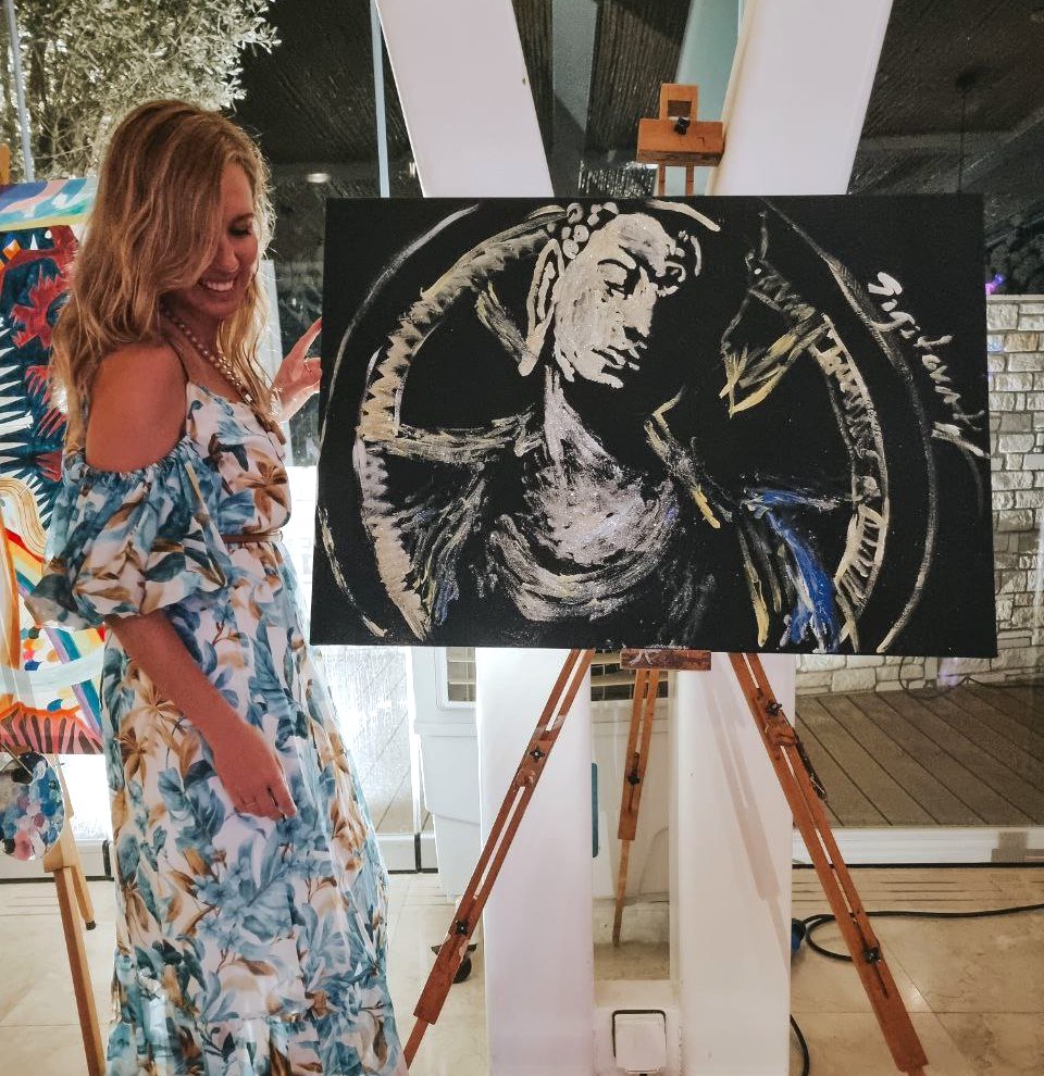 The coolest emotions arise when the extremely enjoyable is combined with the extremely rewarding. This was the case with the incredible painting by Irina Sigitova @sigitovart, created in just a couple of minutes accompanied by the music of the band Basta performed by a Rainbow volunteer.
