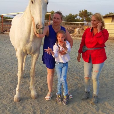 On Wednesday evening, before sunset, our guests - Tatiana and Kirochka @help_kira_pulinskaya - went to the village of Pissouri to the "Happy Horse" school @happyalogo.