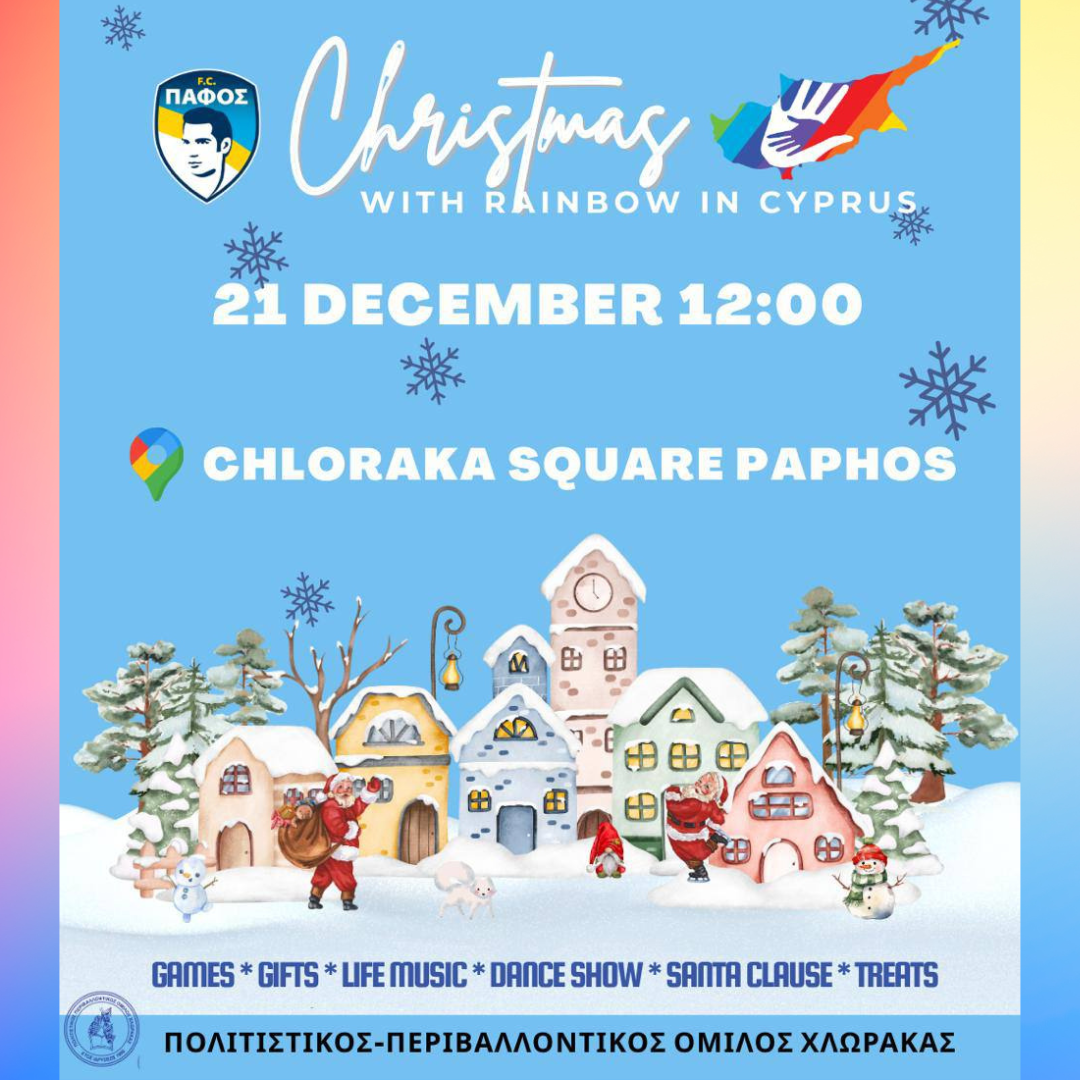 На главной Площади Хлораки состоится наш ежегодный городской Рождественский праздник, организованный совместно с Cultural–Environmental Association of Chloraka и при поддержке ФК «Пафос».
